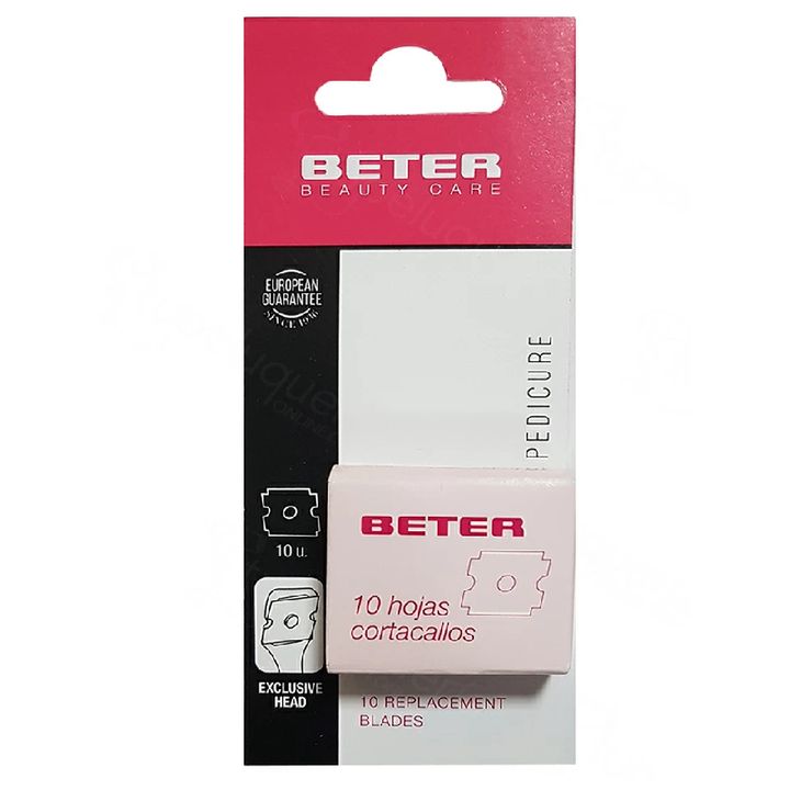Los cortacallos Beter disponen de un cabezal exclusivo que incluye un tornillo regulador del grosor del corte, lo que les confiere la máxima eficacia, seguridad y comodidad. La hoja de doble filo está fabricada en acero al carbono y garantiza un corte preciso. Para obtener un resultado eficaz, asegúrate de que la hoja queda bien sujeta.