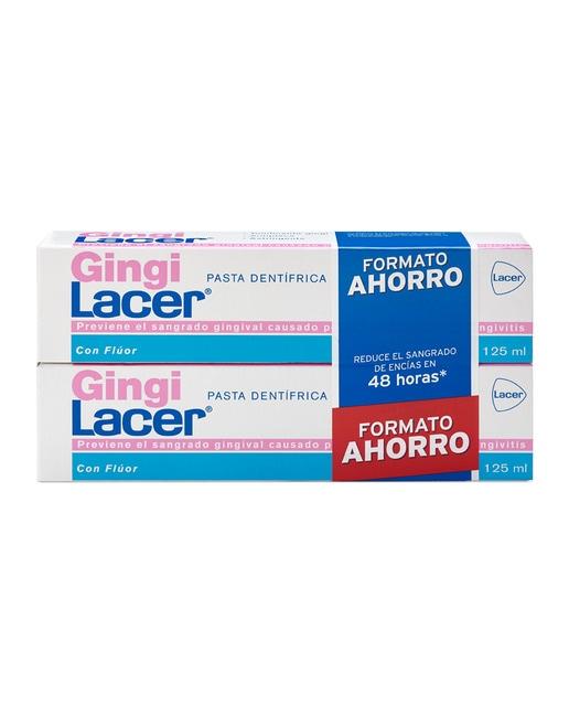 La pasta dentífrica Gingilacer es ideal para el uso diario, ya que previene el sangrado gingival causado por encías delicadas y gingivitis. Su eficacia está demostrada. Este formato incluye dos tubos de 125 ml cada uno. Gingilacer ha sido especialmente desarrollada para disminuir el sangrado gingival originado por el cepillado dental y mejorar las encías inflamadas y enrojecidas, restableciendo al mismo tiempo el buen estado de los tejidos gingivales. Además, esta pasta dentífrica reduce la formación de placa dental, que es el principal desencadenante de la gingivitis.