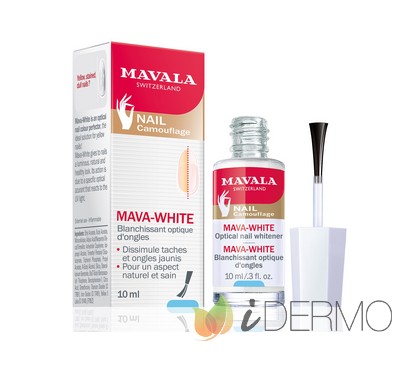La extraordinaria fórmula de Mava-White oculta el aspecto antiestético de las uñas manchadas y apagadas, a la vez que les da una apariencia natural. Actúa como perfeccionador óptico del color de las uñas gracias a un pigmento específico blanqueador que reacciona a la luz ultravioleta. Utilizado como base bajo el esmalte de uñas, restaura su verdadero tono: ¡el esmalte ya no aparecerá como un beige sucio, un amarillo dudoso o un rojo apagado! Aplicado sobre uñas no amarillentas ni manchadas, dará un original efecto azulado. Cuando se seca se vuelve mate y así también pueden usarlo los hombres con uñas manchadas o amarillentas, debido quizás a la nicotina del tabaco, y aquellos que están preocupados por el aspecto de sus uñas.