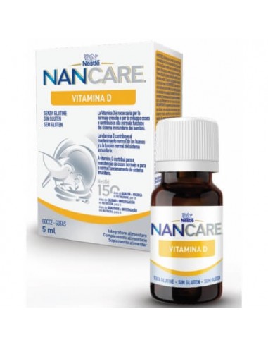 NAN Care Vitamina D es un suplemento en gotas diseñado para bebés y niños, que contribuye al funcionamiento normal del sistema inmunitario y al mantenimiento correcto de los huesos. La vitamina D se sintetiza en nuestro organismo gracias a la exposición solar; sin embargo, en situaciones donde esta exposición es limitada, es recomendable suplementar al bebé con vitamina D para prevenir deficiencias. Este nutriente también puede ser obtenido a través de los alimentos y es esencial para la adecuada absorción de calcio. La leche materna, en muchas ocasiones, presenta carencias de esta vitamina, motivo por el cual los pediatras aconsejan un suplemento de vitamina D, dado que un exceso de exposición solar podría causar problemas dermatológicos.